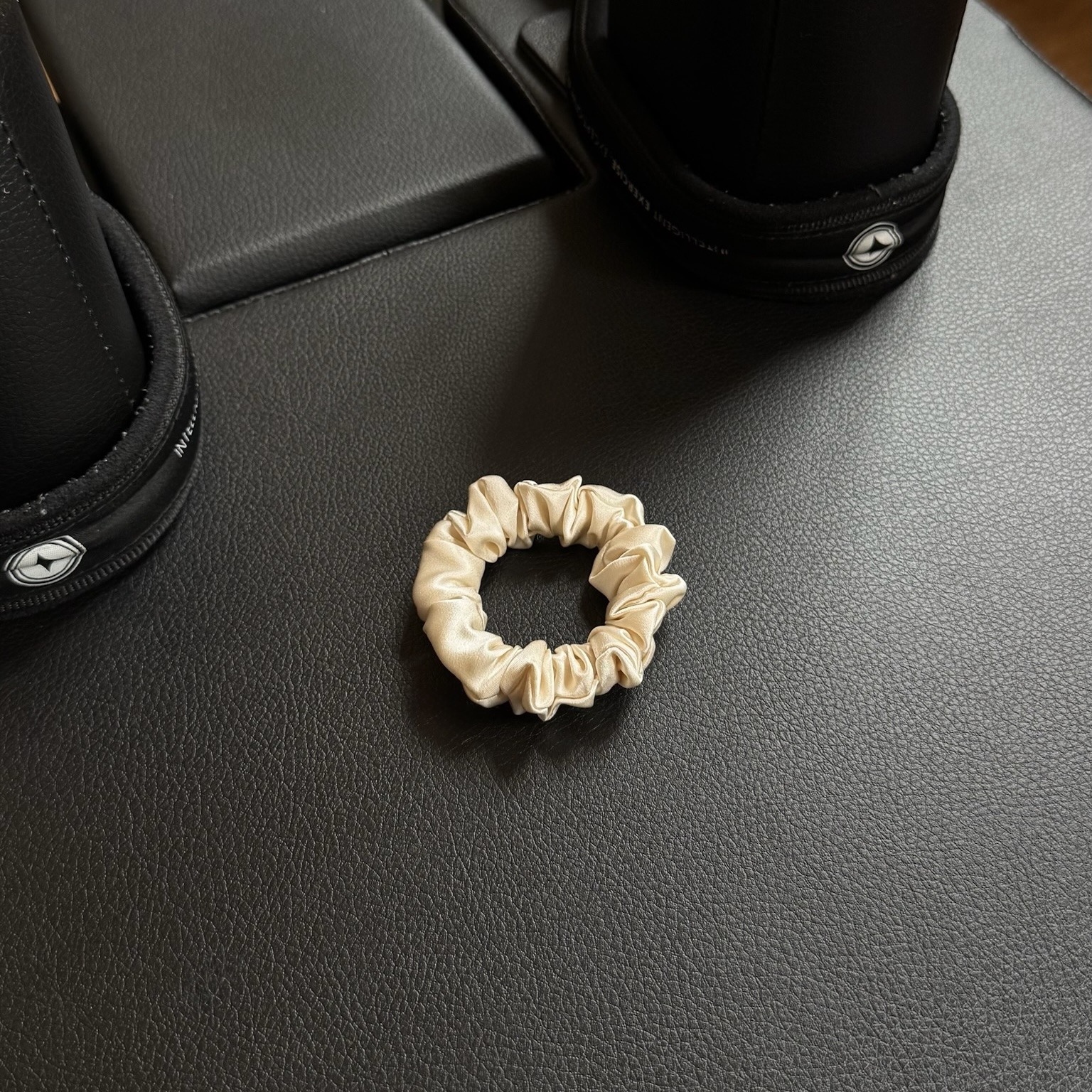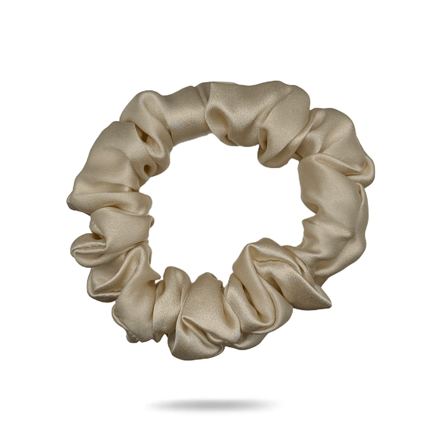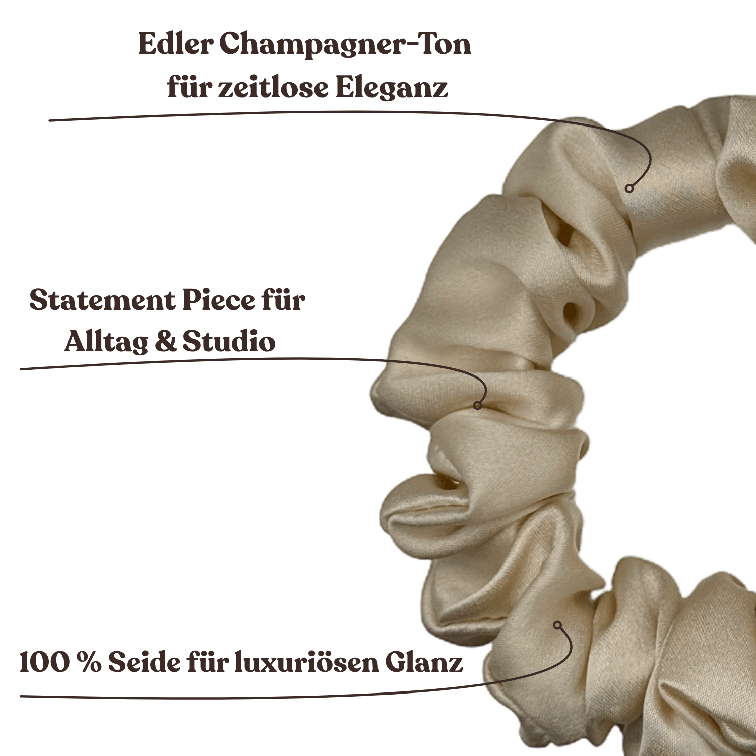 Eleganter Scrunchie in zartem Champagner-Ton – luxuriös, sanft und perfekt für jeden Look.